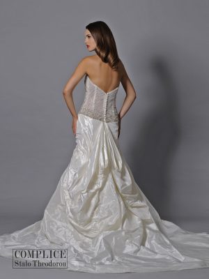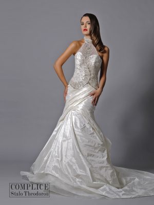 Complice Stalo TheodorouЭксклюзивное свадебное платье силуэта русалка(fit’n’flare) из натуральной тафты от кипрского дизайнера Stalo Theodorou. Вручную расшитый корсет кристаллами Swarovski, американская пройма подчеркивающая грудь, стильная юбка с длинный шлейфом делают вас в этом платье неотразимой.