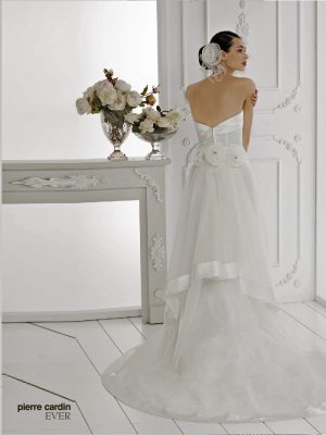 Стильное свадебное платье А-силуэта от самого известного дизайнера Pierre Cardin. Эксклюзивное двухстороннее платье, спереди атлас, сзади органза. Талия изящно расшита, прямой корсет подчеркивает грудь. Легкий шлейф делает платье воздушным и торжественным.