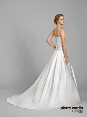 Pierre CardinЭлегантное атласное свадебное платье А-силуэта от знаменитого дизайнера Pierre Cardin. Драпировка на корсете увеличивает грудь, расшитое кружево на талии подчеркивает ее, косой крой и заниженная талия делают вас стройнее. Как всегда идеальная посадка!