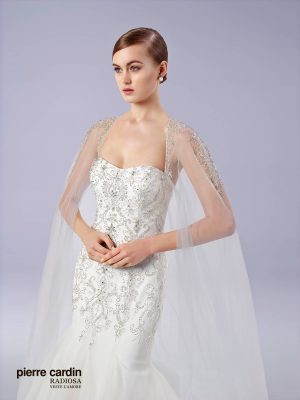 Pierre CardinЭксклюзивное расшитое свадебное платье силуэта русалка(рыбка, fit’n’flare) от самого знаменитого дизайнера Pierre Cardin. Открытая зона декольте, подчеркивает грудь, полностью вручную расшитое платье подчеркивает талию, пышная летящая юбка с длинным шлейфом делает образ сказочным.