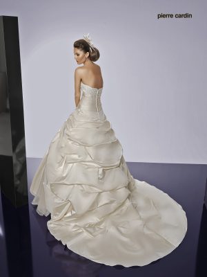 Свадебное платье А силуэта с пышной юбкой от самого знаменитого дизайнера Pierre Cardin. Корсет с расшитым кружевом и вырезом сердечком подчеркивает грудь пышная атласная юбка с длинным шлейфом придает торжественности и сужает талию. Цветок съемный.