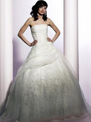 Эксклюзивное итальянское открытое свадебное платье из расшитой органзы цвета айвори с пышной юбкой и длинным шлейфом.