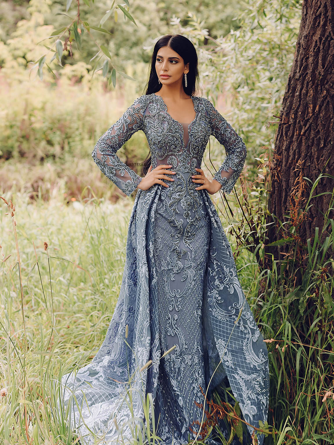 Эксклюзивное вечернее платье с рукавами от ливанского дизайнера. Модель трансформер с двумя силуэтами. Нежное кружево расшитое кристаллами Swarovski. Идеальное платье на свадьбу для мамы невесты или жениха.