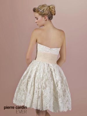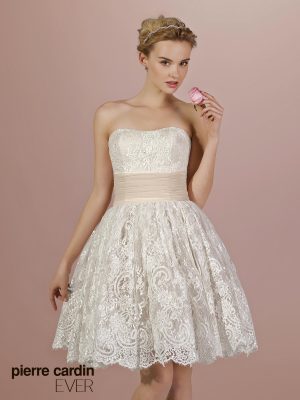 Pierre CardinРоскошное короткое кружевное свадебное платье от знаменитого бренда Pierre Cardin, которое даст фору многим длинным. Нежно персиковый цвет, расшитая подложка юбки, и нежное кружево, пояс выделяет талию, открытый верх с закрытыми чашками подчеркивает грудь. Эксклюзивная модель в RSTELLE.