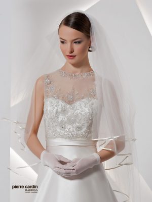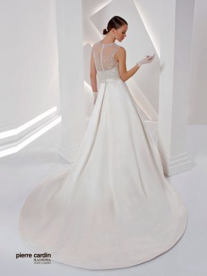 Pierre CardinЭксклюзивное атласное свадебное платье А-силуэта с расшитым закрытым верхом от самого известного дизайнера Pierre Cardin. Нежный королевский атлас светло-жемчужного цвета, с закрытым верхом(майкой) расшитым вручную делает ваш образ неповторимым. Сказочное платье!