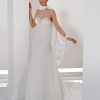 Эксклюзивное кружевное свадебное платье с рукавами А-силуэта от самого известного дизайнера Pierre Cardin. Легкие рукава, закрытая спинка и кружевной корсет делают образ нежным и трогательным, пышная юбка с кружевным купоном и шлейфом придают торжественности и завершают ваш образ.