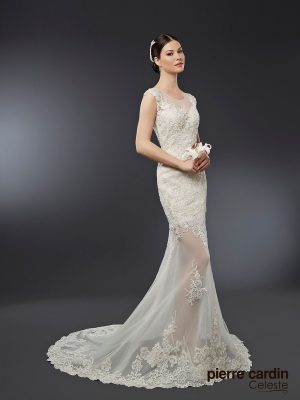 Pierre CardinРоскошное свадебное платье русалка(рыбка) от самого знаменитого бренда Pierre Cardin, платье полностью из нежного расшитого кружева, с закрытым верхом лодочкой и закрытыми плечами, длинный шлейф. Трансформер, может быть с открытыми и закрытыми ножками, коротким и длинным.