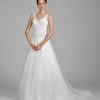 Pierre CardinРоскошное кружевное свадебное платье а-силуэта с длинным шлейфом от самого знаменитого дизайнера Pierre Cardin. Легкая юбка воланами из органзы крупного плетения придает воздушности. Открытый верх подчеркивает грудь, заниженная талия. Эксклюзивно для эксклюзивных невест!