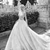 Элегантное и утонченное расшитое свадебное платье силуэта русалка(рыбка), закрытый верх и спинка, V-образный вырез подчеркивающий грудь, легкая юбка со шлейфом. Платье для стильных невест.