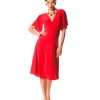 Прямое короткое вечернее платье средней длинны, ниже колена из натурального шелка расшитое черным кружевом, платье с V образным вырезом, подчеркивающим грудь. Цвета белый/айвори с черной отделкой.