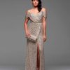 Потрясающее мерцающее расшитое вечернее платье с пайетками. А-силуэтное с закрытым верхом и модными рукавами. Платье превосходно подчеркивает талию и грудь. Глубокий синий и насыщенный бежевый цвет. Эксклюзивная модель для вас.