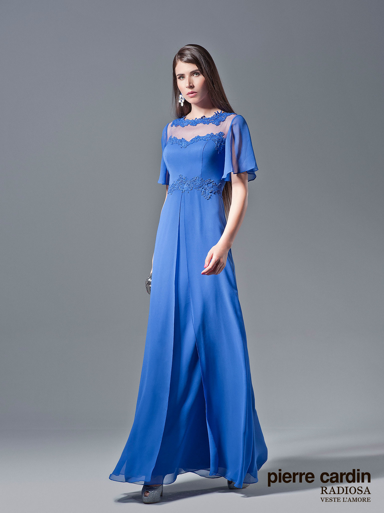 Pierre CardinЭлегантное легкое вечернее платье большого размера от бренда Pierre Cardin, прямое, с закрытым верхом и рукавами, декорировано нежным кружевом, представлено в пудровом цвете. Платье идеально для мамы невесты или жениха.