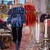 Стильная вечерняя длинная юбка с отделкой расшитым кружевом силуэта русалка(рыбка) от французского бренда Faust. Прозрачная вставка из расшитого объемного кружева. Представлена в бежевом цвете.